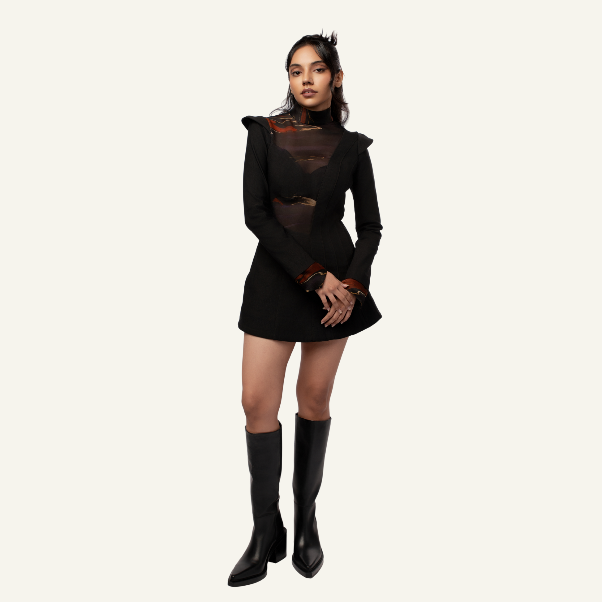 A statement ripple dress crafted in airy organza with a fluid silhouette. The digital print adds modern character, while the lightweight fabric ensures graceful movement and a refined finish.